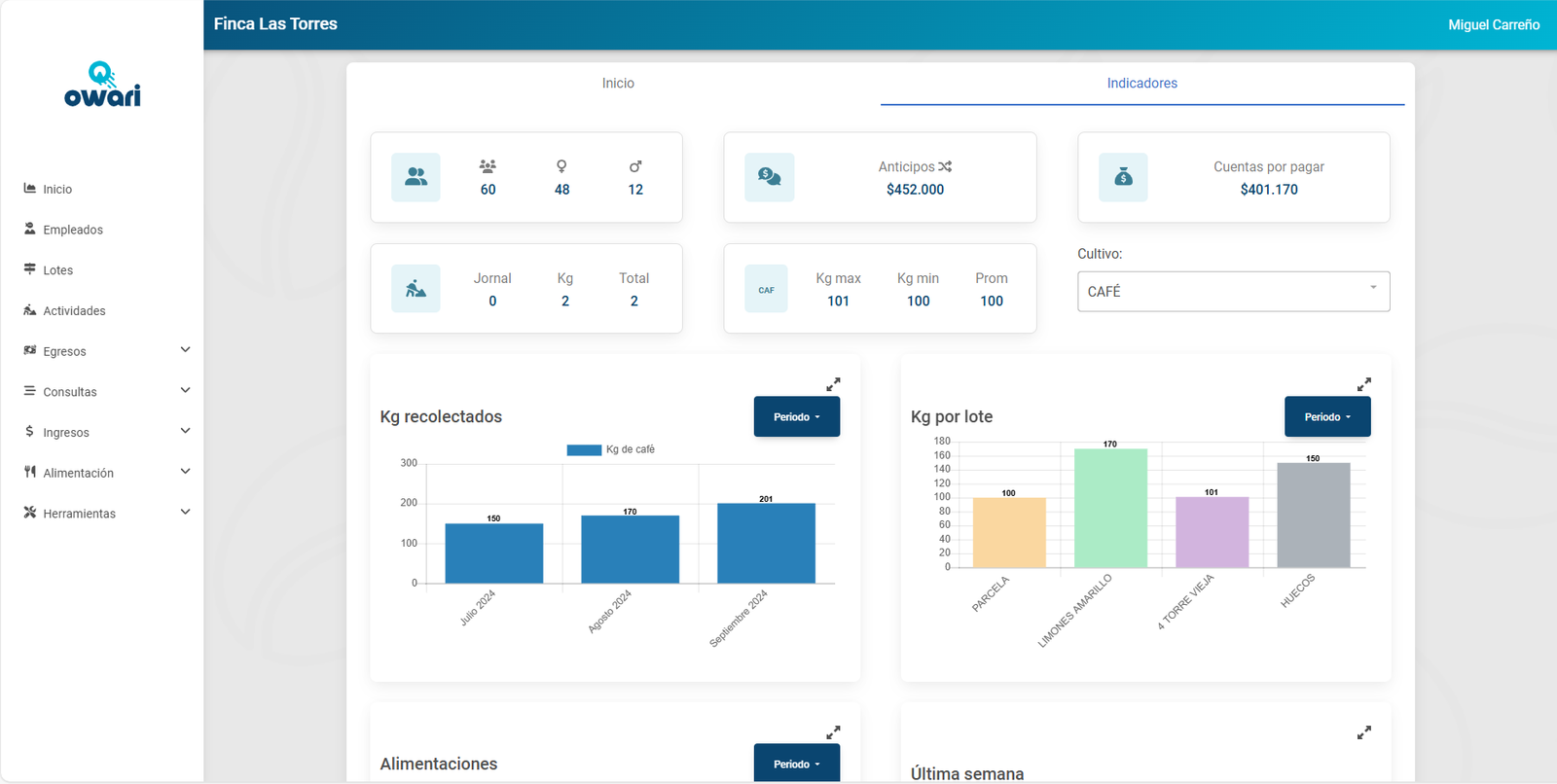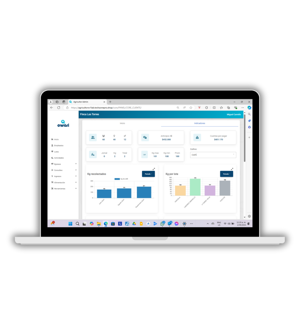 Con nuestra herramienta podrás: Tener un control preciso, seguimiento detallado de lotes, ciclos de cultivo y rendimiento por zona, registro de compras, gastos operativos y ventas con reportes consolidados